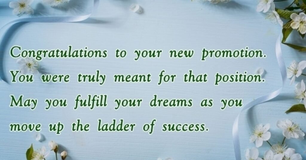 - “A promotion message shows respect, encouragement, and positive feelings for career advancement in life”